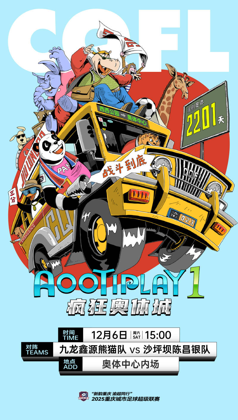 渝超,重庆城市足球联赛,渝超赛程,渝超直播,渝超积分榜,渝超球队/渝超(重庆城市足球联赛)为重庆足球迷带来最新赛程、比分、积分榜、球队信息及直播入口,精彩赛事一网打尽。12月6日15点,本周末“渝超”(2025重庆城市足球超级联赛)将迎来主城赛区的一场重头戏——九龙鑫源熊猫队将在主场重庆奥体中心迎战沙坪坝陈昌银队。这既是主城两支劲旅的出线之争,也是重庆奥体中心足球场时隔2201天重新迎来大型足球赛事。