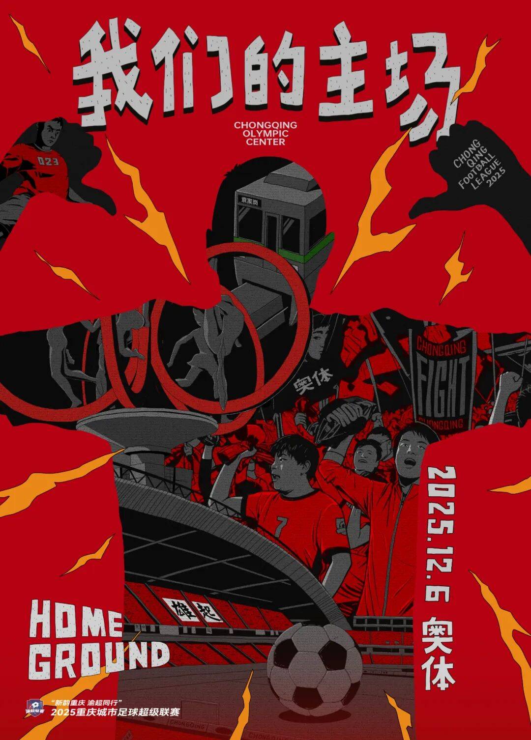 九龙坡队主场已为大家准备好中场抽奖福利!重庆啤酒渝超联名款、宜简水卡、向料重庆小面组合、296文体村健身年卡、卡尔美套装现场助阵。让我们用掌声和欢呼,唤醒尘封已久的奥体热血记忆,续写属于重庆足球的燃情篇章!