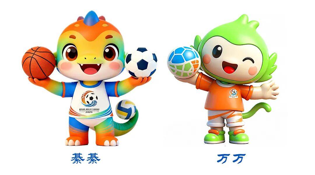 吉祥物綦綦由设计师袁月阳以綦江恐龙为创意原型打造,通过萌趣化、拟人化设计,让这一极具地域标识性的“远古生物”化身青少年运动员的“运动萌友”。设计中既保留了恐龙的可爱特质,又注入满满青春活力,同时暗含重庆“山水之城”的色彩灵感,明快且富有层次的色彩搭配,呼应着重庆人豪爽敢拼的地域性格。吉祥物手持篮球、足球、尾托排球的动态造型,直观串联起三大球运动核心元素,将竞技活力与协作精神具象化呈现,成为地域文化、古生物IP与体育精神的创意融合体,为赛事增添了鲜明的记忆点与传播力。